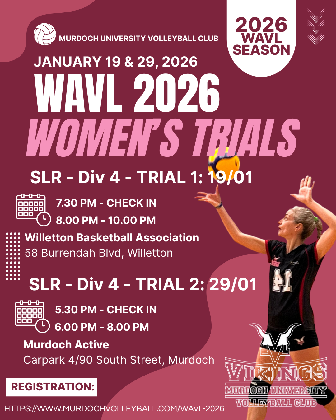 The details MUVC's Women's trials are as follows:
